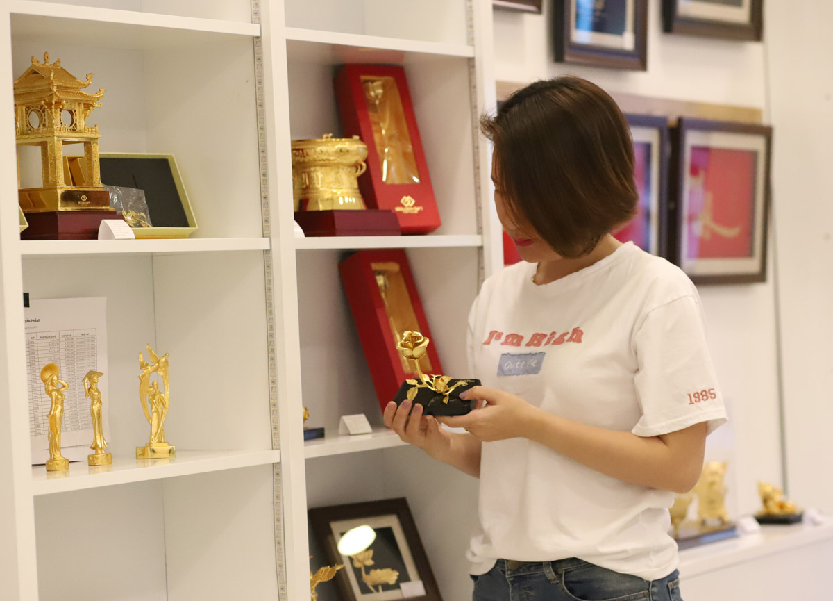 Loại sản phẩm này được ưa chuộng bởi được thực hiện rất tỉ mỉ và cầu kỳ từng công đoạn từ việc lên thiết kế, đúc mẫu, mạ vàng và trang trí từng chi tiết nhỏ như đường gân lá, đường răng cưa… Nhiều sản phẩm phải mất vài tuần mới hoàn thiện xong.