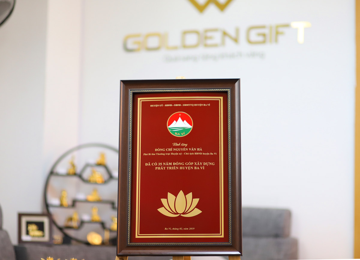 Có được thành tựu đó là nhờ sự đoàn kết của cán bộ, nhân dân huyện nhà. Trong đó không thể kể đến những nỗ lực, tầm nhìn quản lý của những lãnh đạo chủ chốt. Mới đây, để ghi nhận những đóng góp của đồng chí Phó Bí thư thường trực huyện uỷ, Huyện Ba Vì đã đặt thiết kế riêng bảng vinh danh do Golden Gift Việt Nam chế tác.