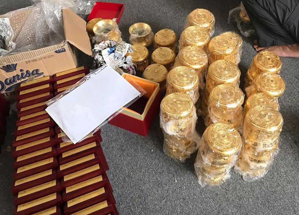 Số lượng lớn trống đồng mạ vàng được hoàn thiện.