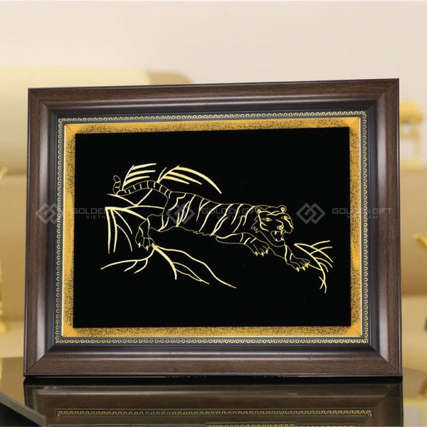 Tranh Hổ xuống núi do Golden Gift chế tác được mạ vàng thật bằng phương pháp điện phân.