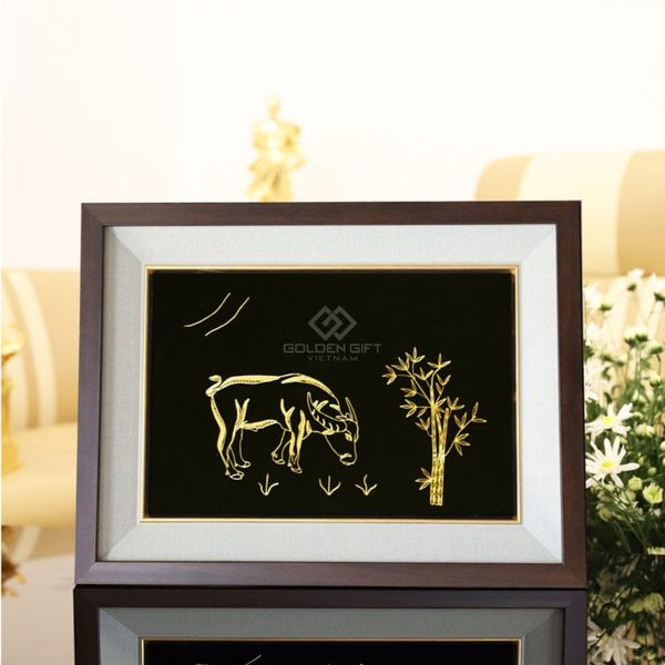 Tranh Trâu do Golden Gift chế tác được mạ vàng thật bằng phương pháp điện phân.